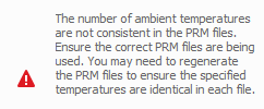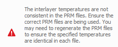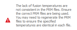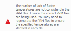 When using multiple PRM files which contain Lack of Fusion or Hot Spot values, the number and value of the ambient, interlayer, lack of fusion, and hotspot temperatures must be identical. Check to make sure the correct files are being used. Regenerate one or more PRM files as necessary and then attempt again the part-level analysis.