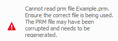 When one of these errors are shown it indicates that one of the PRM files used in the simulation is corrupt, empty, or otherwise incorrectly formatted. Regenerate the PRM file and attempt the part-level simulation again.