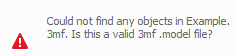 This error indicates the 3MF model which was imported is empty. The 3MF file should be exported again from the source software.