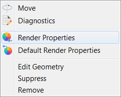 For any of the Geometry or Results items, you can right-click for access to Render Properties and other options. Parts and support structures have the following options on the right-click menu: