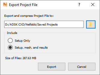 - If you selected Project, choose whether to include only the Setup files, or Setup, mesh, and results.