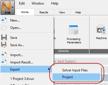 - On the Simulation menu, select Export, and then either Solver Input Files or Project.