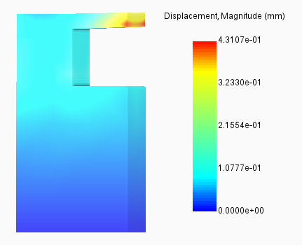 In the Displacement results at this time, you can see the upward deflection of the overhang.