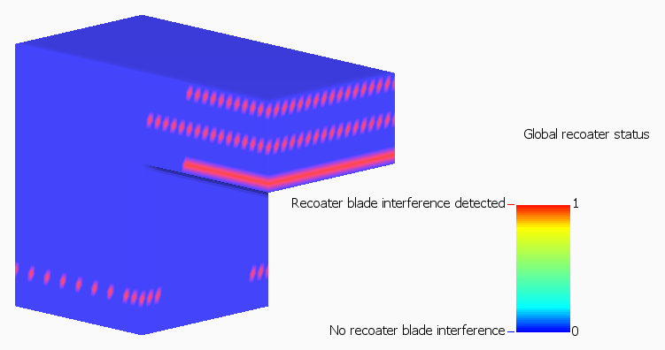 Seeing clear evidence of interference, an engineer could decide to add support structures to prevent distortion of the part and damage to the recoater blade.