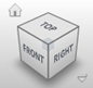 This tool is ideal for quickly moving from one part view to another. Just click on the cube face that corresponds to the side of the part you want to see, such as Front, Top, or Right. You can also click an edge or corner of the cube to show two or three adjacent faces of the part. When a face is not visible, you can access it with arrows displayed beside the cube, as shown below.