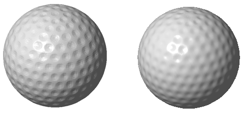 Left: Result of texture imposing. Right: Improved surface after smoothing operation (5.00 iterations)