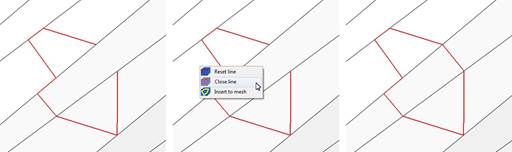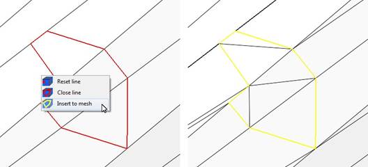 Insert to Mesh. This inserts triangle edges along the drawn line, and retriangulates the mesh as necessary. The surface is split along the line to create open border edges. As a result, everything contained within the line becomes an individual shell.