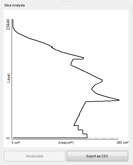 Some actions change the total amount of area covered, such as scaling, adding or removing a slice stack, point reduction, and so on. In such cases, a recalculation is required. However, as this can take a while, it is not done automatically. To indicate that an action might have changed the area, the button becomes available; for all other actions the button remains inactive.