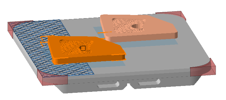 Two parts on a multi-laser platform. The selected one has the left-most laser assigned to it.