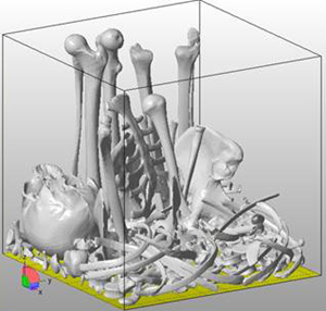 The Monte Carlo packer is best suited to cases that include one or two vital and potentially expensive part(s) that are aligned carefully in the build space, surrounded by many small, less important parts. During the packing process, if allowed by the settings, the parts are rotated at the start, but then not again. The process is similar to random shaking, where parts move into gaps as they find them. The goal of Monte Carlo packing is to move the parts as low as possible in the build space, to minimize the Packed Platform Height.