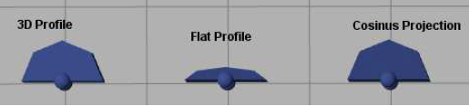 - Cosinus projection with rotation: The bar is realized in the same way as the Cosinus projection, but with a rotation towards the Z-axis added, as in the 3D profile option.