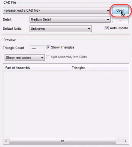 Netfabb's classic CAD import which converts CAD models directly and permanently into triangle meshes.
