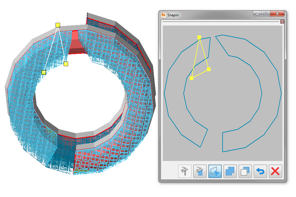 TopIn some modules, an additional view is provided temporarily. This is the snapin view, and it is used by the support module to let you edit generated volume supports in a 2D view, and by Texture & Color when aligning a texture. The snapin view is not activated and not placed by default in the Left window layout, but it appears when needed. When activated via , this view is always visible, and the modules that make use of it fill this view as necessary; otherwise the view remains as a new tab or temporary overlay in the context view.