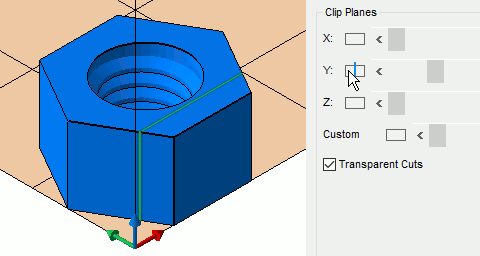 Use the clip planes to have a look at the inside of a part