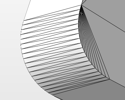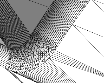 This parameter specifies the maximum allowable distance between generated mesh triangles and the model geometry. Tip: If you have two rounded bevel edges meet at a corner, setting this to a smaller value will ensure that the corner is properly rounded, too.