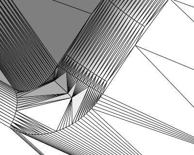 This is the same location of several beveled edges meeting, one with 1 mm, the other with 0.05 mm maximum surface deviation. |