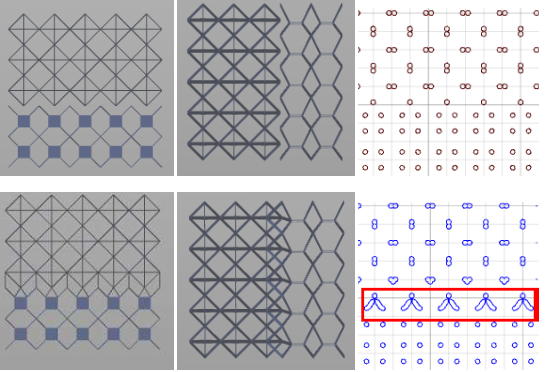 With active transition rules, the transitions you have designed are finally inserted into your structure. If you choose, for example, "If cell behind is equal", "Cell 4", "then activate", and "Transition 1", your Transition 1 is activated and inserted into your structure cell every time the structure cell behind the current cell (the next cell towards positive Y-values) is Cell 4.
