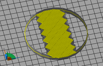 A cylinder of 100 mm diameter, with hatches clamped to ±20 mm using axisfilter. The platform grid spacing is 10 mm.
