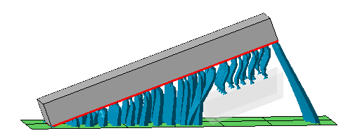 These print simulation results are generated by using a metal powderbed machine workspace based on material and toolpath selection and sending the generated solution to Autodesk® Simulation Utility LT for Netfabb® (included in the Ultimate subscription) or Autodesk® Simulation Utility for Netfabb® as included in the separate product Autodesk® Netfabb® Local Simulation. This tab also includes the controls to optimize lattice support, including a histogram display for bar support elements that compose the optimized support structures. |