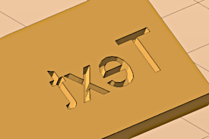 Sinks the label into the part surface, and mirrors the text