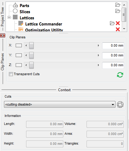 Netfabb's user interface consists of several panes, or views, arranged in a window layout. The layout of the interface can be adjusted by resizing, repositioning, stacking, even detaching the different views that make up the interface. This can be especially useful on a multi-monitor workplace.
