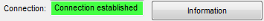 - Connection: the field (yellow not connected in the image) shows the connection state of the engine. This field turns green if the connection was established to a printer or red in case of an error. The “Information” button provides information about the connected printer and the workspace