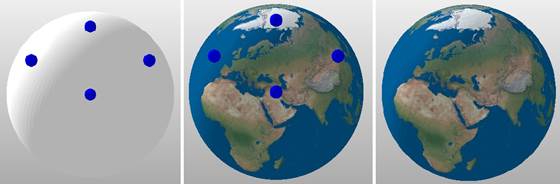 Note: Depending on the type of texture being applied, (projector, cylinder, sphere) there may be one or more dots available to adjust the size and orientation.