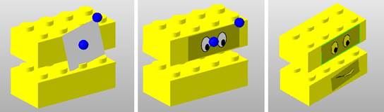 Left: the part with a preview of the texturing plane, middle: a preview of the texture, right: the textured part.