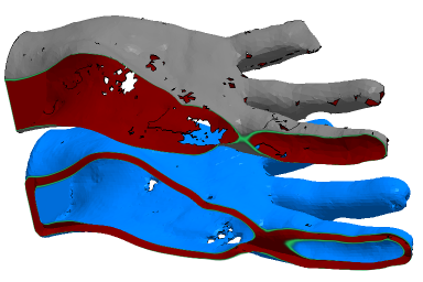 The flawed mesh (top) has been turned into a closed mesh with a thickness (bottom).