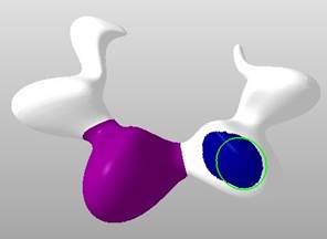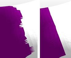 Left: A few colored triangles are missing. Right: The part was improved by painting on triangles.