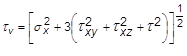 8. A single von Mises stress value is determined is based on the maximum combined axial and bending stress, the transverse shear stress, and the torsional stress using: