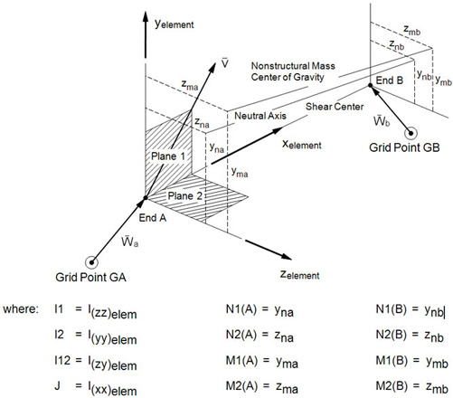 M1(A), M2(A), M1(B), M2(B) (y,z) coordinates of center of gravity of nonstructural mass for end A and end B. See Remark 9. Real 0.0 (no offset from shear center), same values as end A