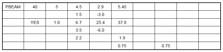 5. If any fields 4 through 9 are blank on the continuation with the value of X/XB = 1.0, then the values for A, I1, I2, I12, J, and NSM are set to the values given for end A. For the continuations that have intermediate values of X/XB between 0.0 and 1.0 and use the default option (any of the fields 4 through 9 are blank), a linear interpolation between the values at ends A and B is performed to obtain the missing section properties.