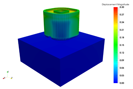 Results can be imported and viewed in the Simulation Utility for Netfabb or in ParaView. Figure 2 shows the computed final distortion before the part is removed from the substrate.