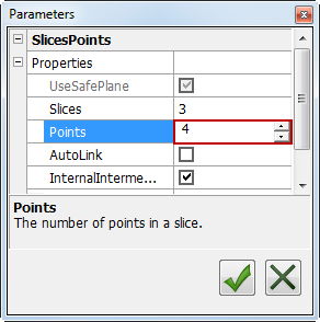 You can change the number of Slices and Points by incrementing and decrementing the count values in the Parameters dialog.