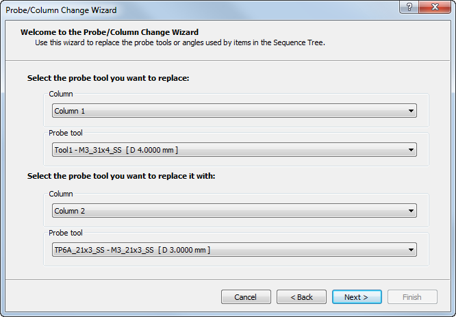 Probe/Column Change Wizard