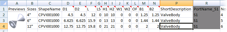 After creating the catalog template, you create an Excel worksheet to specify component size detail in Excel.