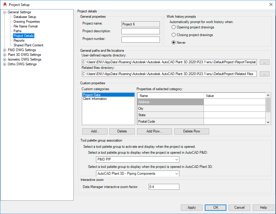 Configures project and drafting preferences, such as component symbology, tagging rules, annotation properties, layers, and colors.