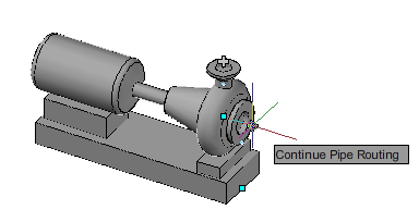 Continuation grips are available at open ports, and at default branch locations (For example: the middle of a pipe segment). A continuation grip does not appear if the port is in an xref, or the port is connected to from another project drawing as an xref.