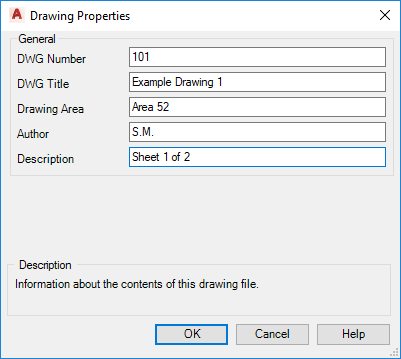 - Under Description, enter a description (for example: The project to which this drawing belongs).