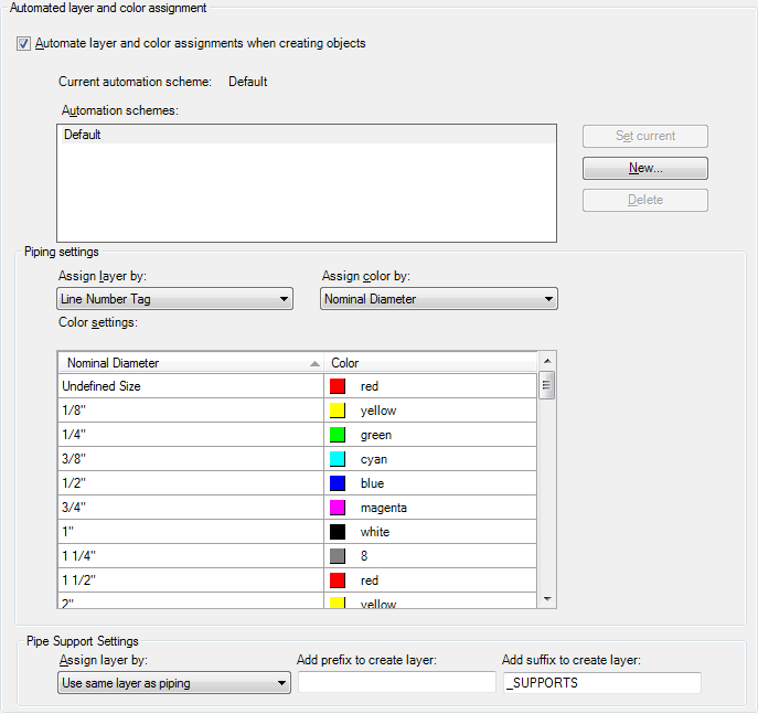 Use current layer (Unmanaged) - Pipe supports are created on the current layer. This behavior is compatible with AutoCAD Plant 3D 2012 and earlier.