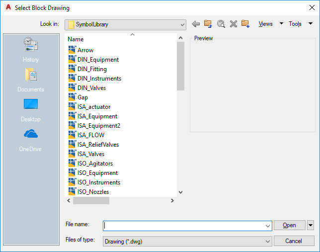 Displays a list of the blocks available in the selected drawing that can be used for the symbol, end connection, or tag format.