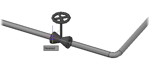aperture size or zoom out. To snap correctly, the Nearest object snap glyph must be visible when the mouse is directly over the pipe centerline.