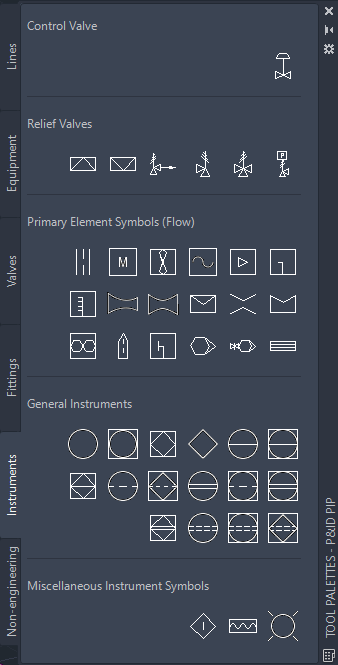 You add instruments as you would any other item. They are associated with a specific layer and color. You can substitute the control valve or topworks after adding an instrument to a drawing.