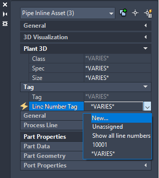 The Line Number Tag list cannot be set in the Properties palette if the selected pipe is not connected.