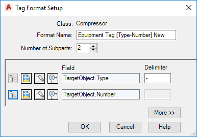 You created a new tag format and assigned it to a Plant 3D object. When you use the Plant 3D object in a drawing, the Assign Tag dialog box prompts you to enter tag data for the tag format you created in this procedure.