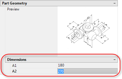- In Part Geometry, in Dimensions, enter an angle (for example, enter