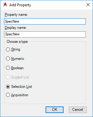 In the Add Selection List dialog box, enter the name for the new selection list (for example: