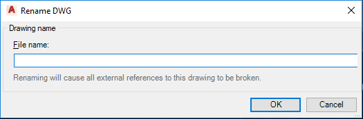 Specifies the new file name. If the original file name was created using a file-name format, for example, a format that combined Area, Discipline and number separated by a - delimiter, the Rename DWG dialog box would have these fields: