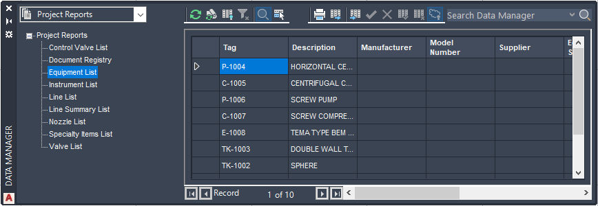 - In the Data Manager, in the drop-down list, click Project Reports.
